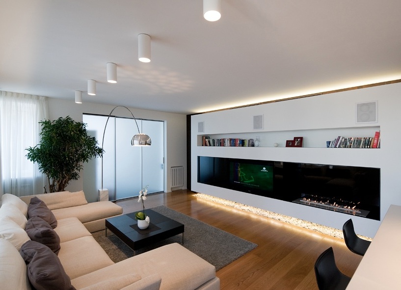 Argiztapen mota batzuk erabiliz , gela zonatu dezakezu edo zenbait funtziotan zentratu. Horrela, aretoan gela modernoak dituzten jantziarekin konbinatuta, telebista-eremua nabarmentzeko eta jangela erabiltzeko armiarma-euskarriak argiztapen luzeetan erabil ditzakezu. Egoera horretan bateratzeko estekak sabaia ezkutatuta egongo da, gelako perimetroaren inguruan. Ederra eta modernoa!