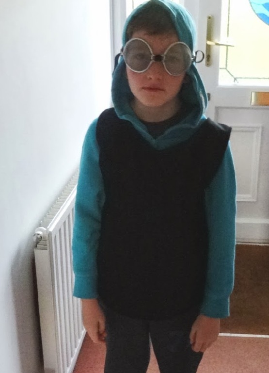 - Hezur-formako adarretan ehun zilarkar eta beltzez moztu dugu, luzera haurraren hazkundearekin bat etorriz. Aurpegiak konbinatu ondoren, pasatzen dugu. Turtleneck beltz bat lepoarekin lotu.