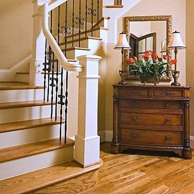 Eta, azkenik, etxearen elementu garrantzitsua eskailera da. Ez ezazu ardura aukeratu. Oso garrantzitsua da eskailera estiloa zehaztea, ez materiala. Adibidez, estilo unibertsala eskailera funtzional lasaia da. Eskailera eta eskulekin tolestuta dituzten etxeen barruko klasika, agian, udan hondoratu da. Arrakastaren gailurrean, gaur egun art nouveau hesi metalikoen barazki eredua da. Beira eta hormigoizko goi teknologiako eskailera ere. Herrialdearen estiloaren eskailerak ez dira ultra-modan egon, baina etxeko erosotasuna ematen dute.