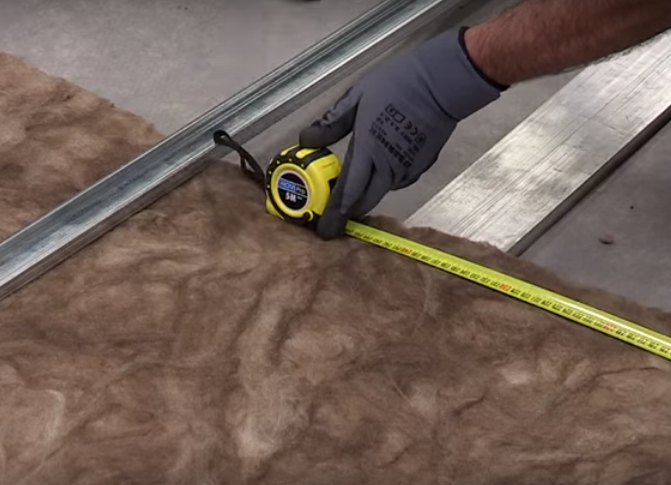 - Material insonorizatuarekin beteta . Jarri plakak mezuaren artean. Gure kasuan, beira zuntzez oinarritutako zerriak dira. Egoerak betetzean, ziurtatu materiala partizioaren aurka dagoela eta ez duela hutsuneik sortzen. Bestela, zarata-xurgatze maila nabarmen gutxituko da.